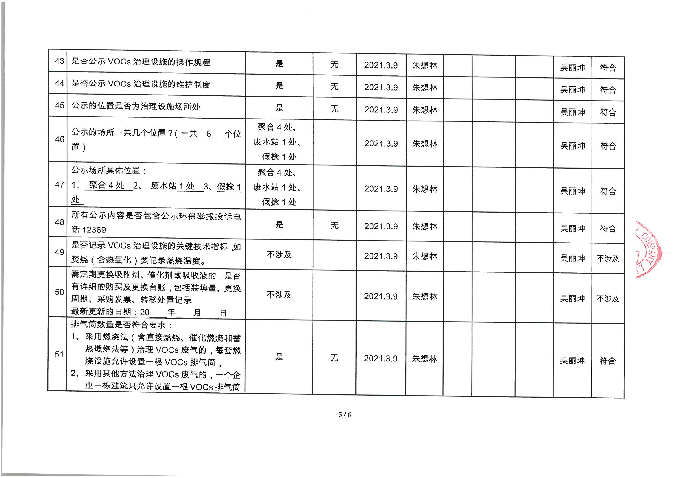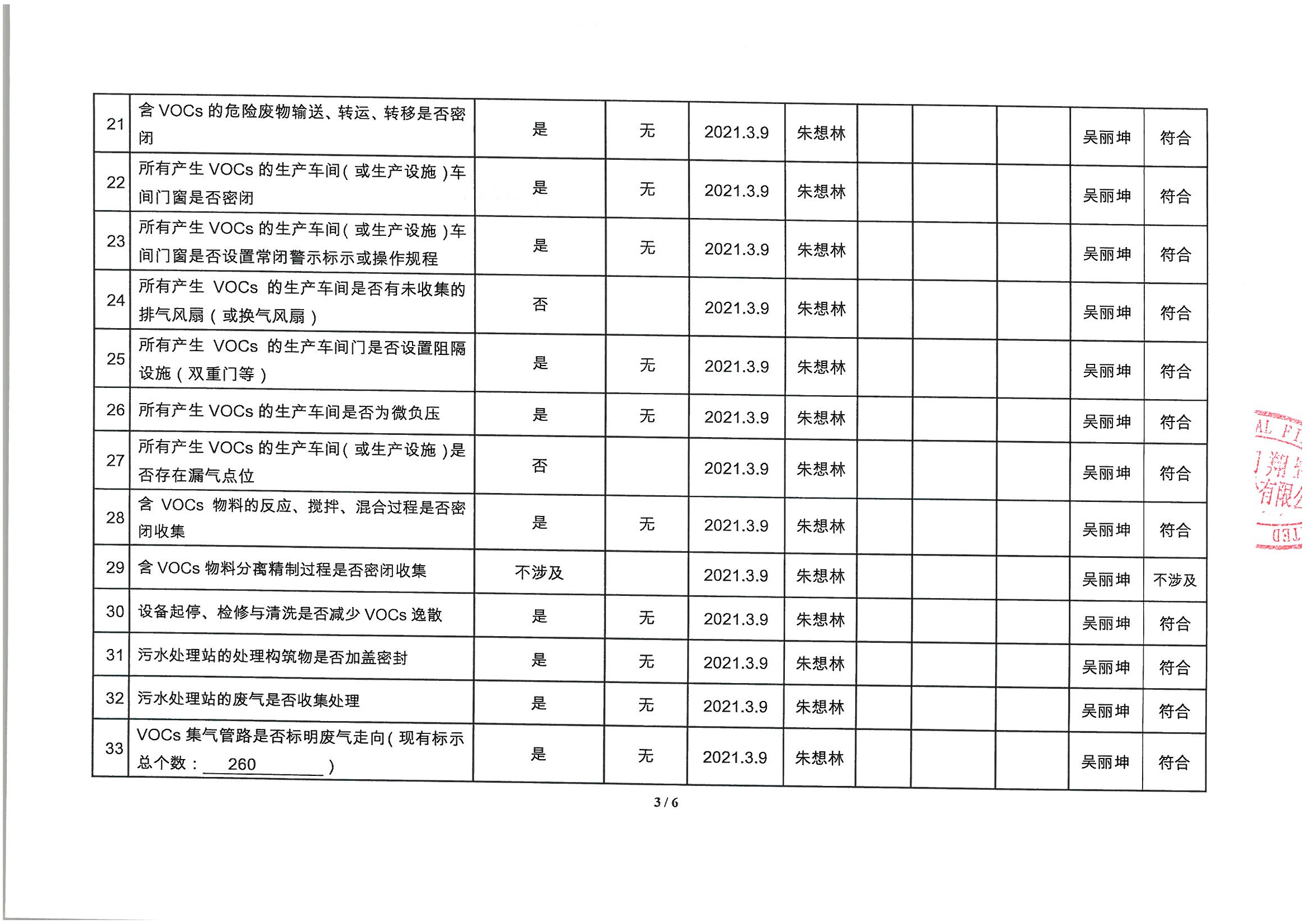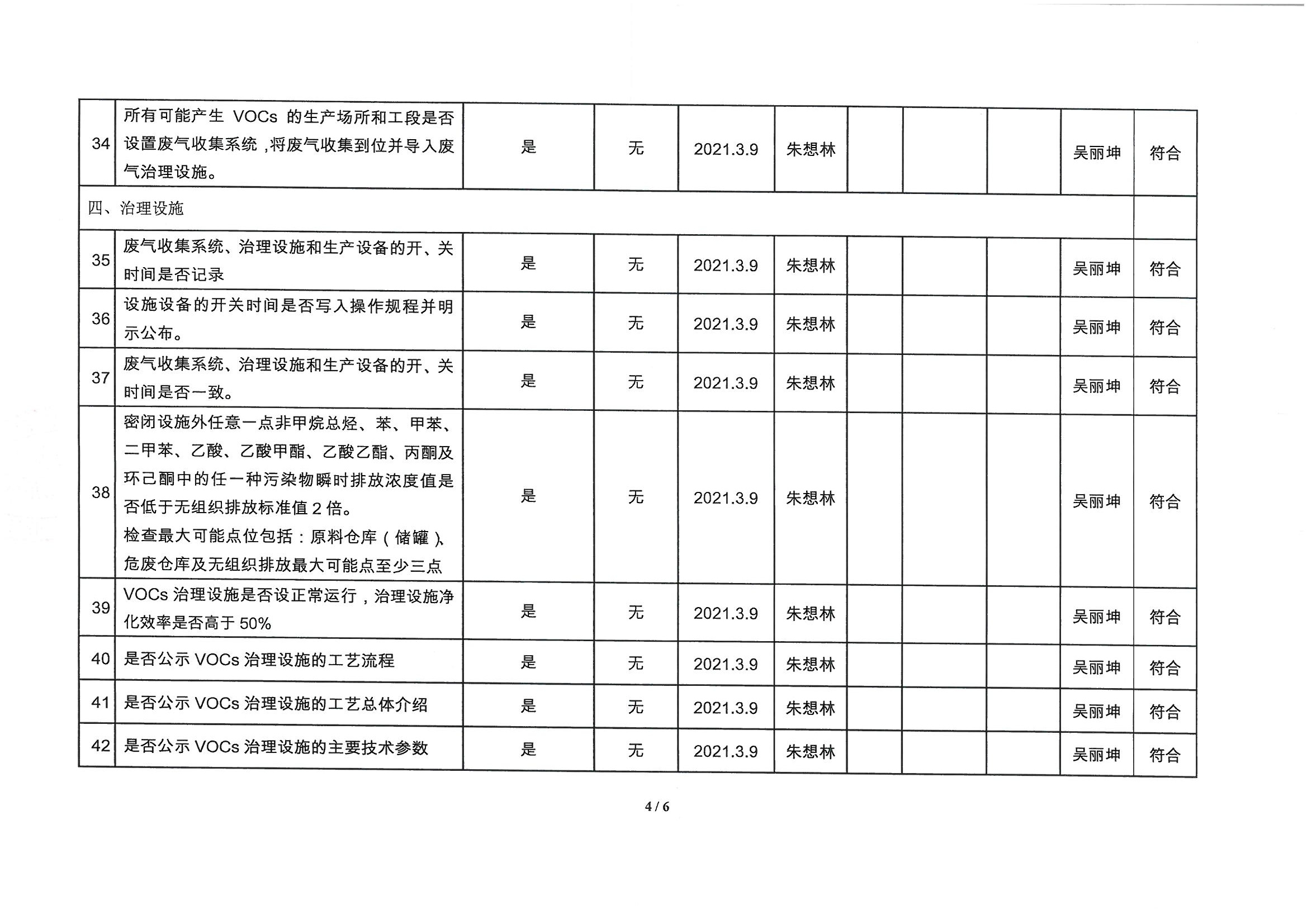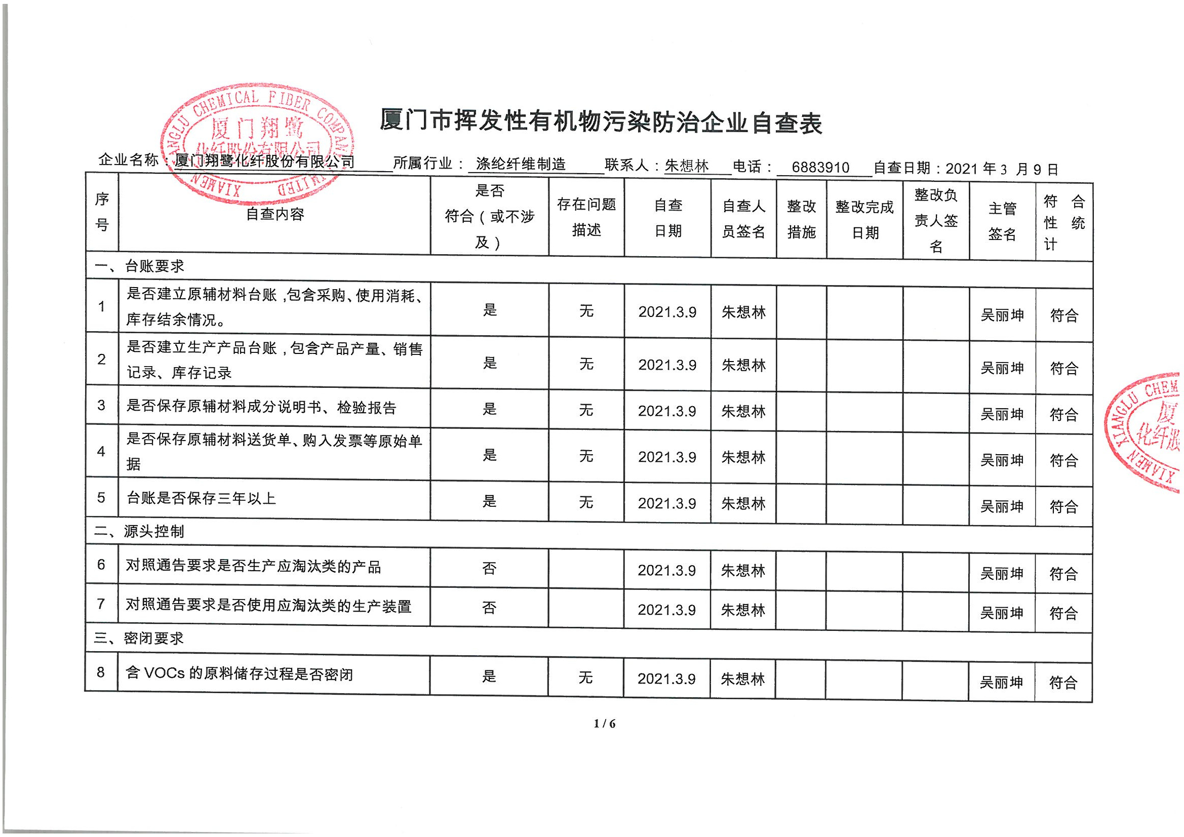 廈門(mén)市揮發(fā)性有機(jī)物污染防治企業(yè)自查表 (2021年 第一季度)