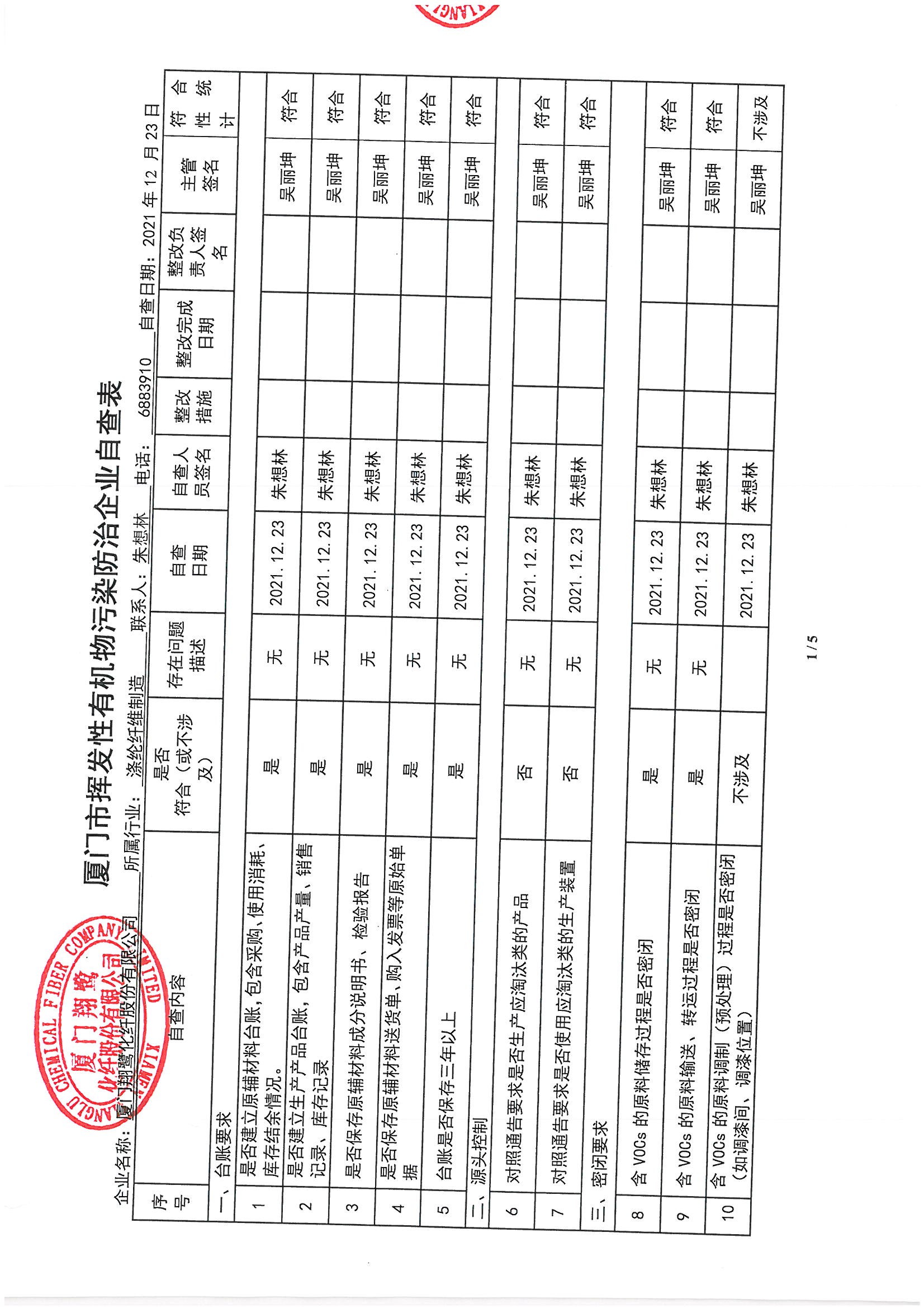 廈門(mén)市揮發(fā)性有機(jī)物污染防治企業(yè)自查表 (2021年 第四季度)